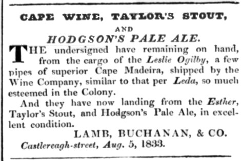 Brewery et avait un permis d’exportation vers l’Inde. Compte tenu de la longueur du voyage et des écarts de température importants, Hodgson dû y ajouter beaucoup de houblon et augmenter la teneur en alcool. Lors du périple vers l’Inde, elle bénéficiait grandement du voyage, arrivant à destination à maturité. Au début du 19e siècle, le fils de Hodgson repris la Bow Brewery et leurs nouvelles pratiques commerciales dissuadèrent leurs clients indiens. Pendant la même période, plusieurs brasseries du regroupement Burton perdirent leurs permis d’exportation européen compte tenu des nouveaux tarifs sur la bière.