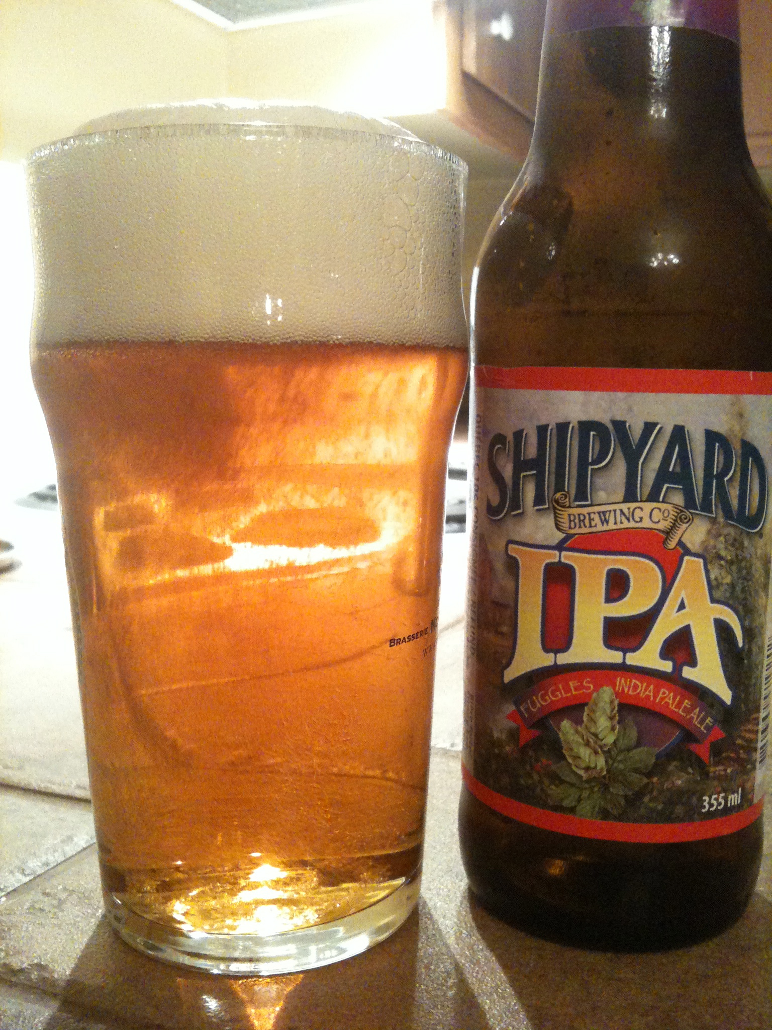 Tout d’abord, dès l’ouverture de la bouteille de Shipyard IPA, on reconnait immédiatement l’amertume typique de ce type de bière. Une fois dans le verre, sa couleur ambrée et sa carbonatation attire mon attention. Elle forme un super col de mousse pour ainsi emprisonner les arômes dans le verre. En bouche, l’amertume présente me surprend. Non pas par son amertume élevée, mais par le type d’amertume en bouche. Après une rapide recherche sur leur site web, je remarque qu’ils ont utilisé le fuggle comme houblon. Je ne le connaissais pas! Elle est très désaltérante et pour une bière à 2,50$ la bouteille, elle en vaut le coup !