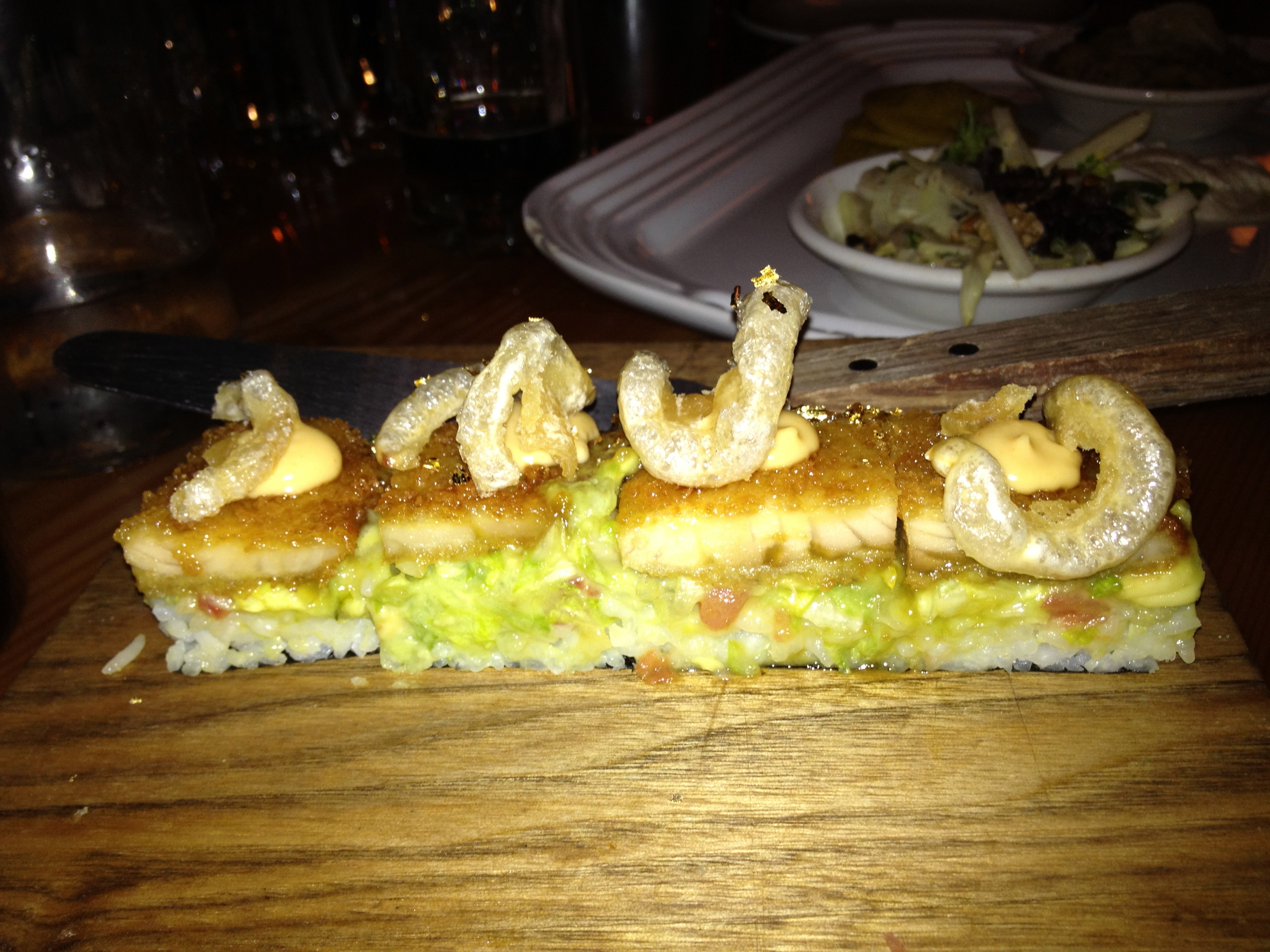 - Nigiri d’esturgeon frit et oreilles de crisse