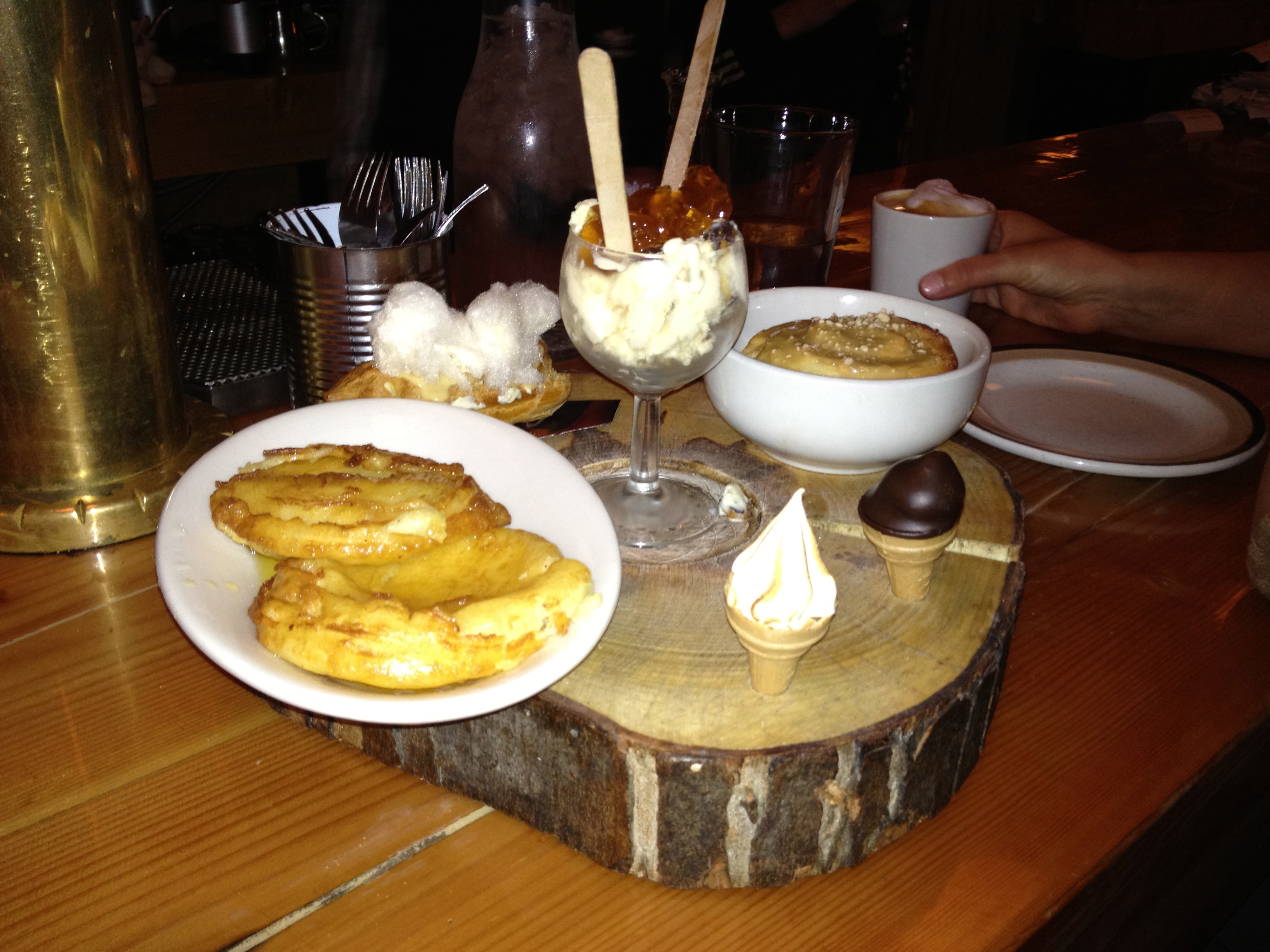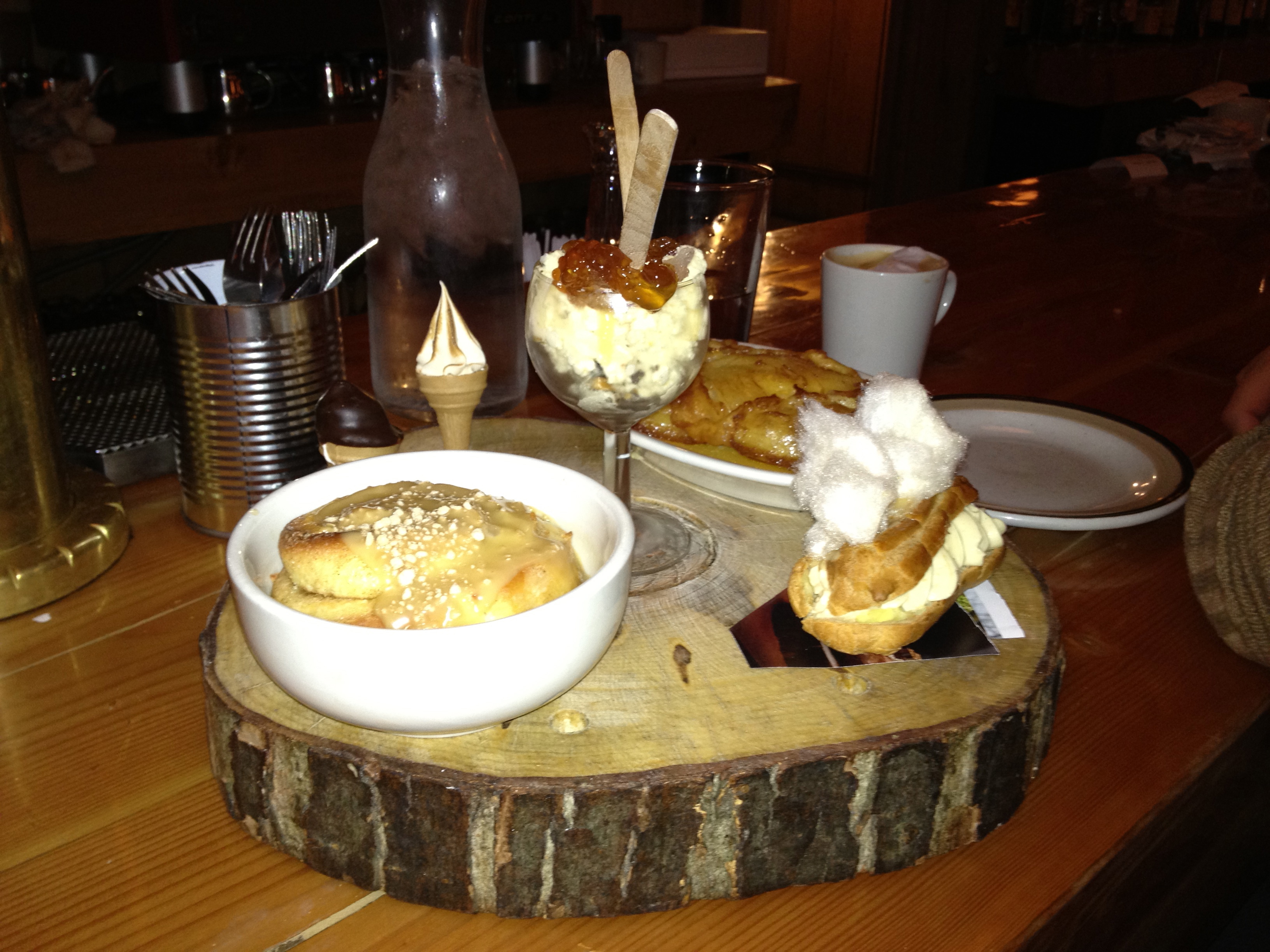 - Brioches à l’érable, crême glacée au Skor, éclair à l’érable et barbe à papa maison