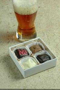 Pour ceux qui ne savent pas ce qu’est les hopalates, cliquez ici ! Voici maintenant les Beercandy! Pour les amateurs de p’tit sucre et les fans de houblon, voici la gâterie idéale ! Il s’agit d’une boîte dans la quelle on y retrouve 4 chocolats à la bière. Le premier s’agit d’un caramel à la IPA et au chocolat blanc. On y retrouve un caramel au lambic aux framboises dans du chocolat noir. Il y a aussi un caramel à la lager au chocolat au lait ainsi qu’un caramel à la stout dans du chocolat noir !!! Les bières utilisées proviennent toutes de microbrasseries.